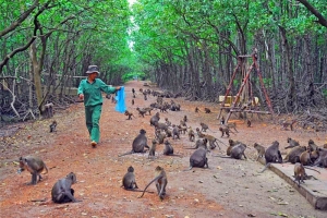 Cần Giờ is a coastal suburban district of Hồ Chí Minh City, Southeast region, Vietnam. The district is located 50 km from downtown Hồ Chí Minh City. As of 2010, this district had an area of 704 km², population of 70,697, comprising Kinh people (80%), Khmer Krom and Cham people. Cần Giờ is home to Cần Giờ Mangrove Forest, a biosphere reserve listed by UNESCO.